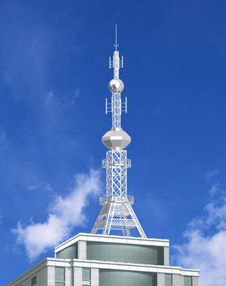 工艺塔的主要功能: 避雷 ,装有普通避雷或高级专业产品避雷装置。防空, 装有普通障碍灯或高级的全自动带闪光的高寿命的航空障碍灯装置。通讯 ,具有安装BP机天线通讯各种 装置,可实现防火,防盗 无线联网。观光 有的装有开放式观光园厅或封闭式观光园厅。装饰塔的上部为不锈钢管,塔体的表面为境面不锈钢板,白天很亮,晚间 有各种追逐式循环彩灯或彩色射灯等,以烘托大厦的造型,并有美化夜景的功能。